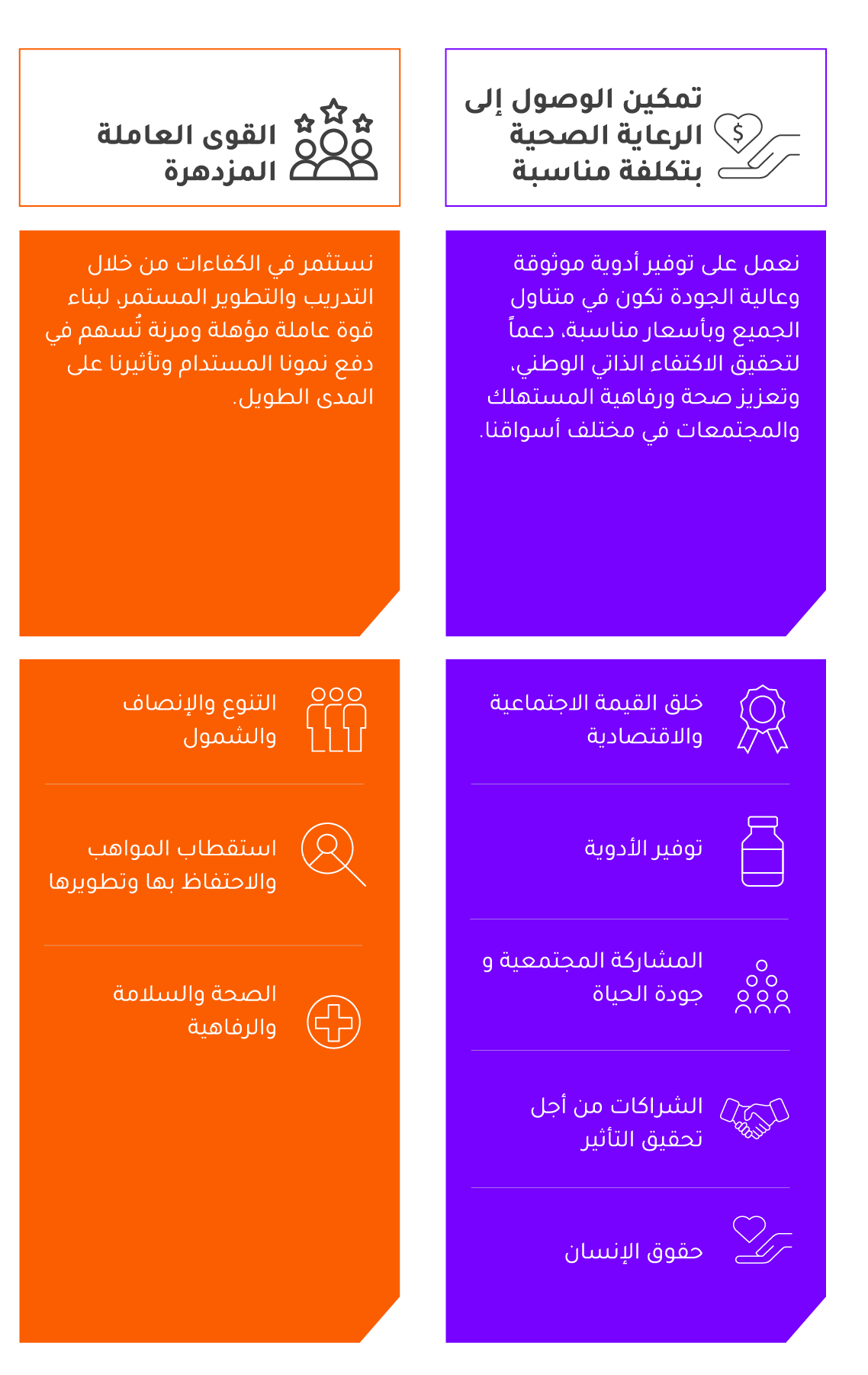 وتماشيًا مع فلسفتِنا “معًا لصحةٍ أفضلَ”، نلتزمُ ببناءِ مستقبلٍ أكثرَ صحةً واستدامةً من خلالِ مبادراتِ المسؤوليةِ الاجتماعيةِ المؤثِّرةِ، والشراكاتِ المجتمعيةِ، والمسؤوليةِ البيئيةِ، مما يُساعِدُ على تحقيقِ أهدافِ التحوُّلِ في المملكةِ.